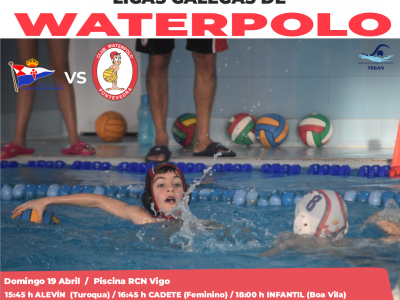 El Campeonato Gallego Cadete comenzará el sábado a las 9:45 h, con pausa al medio día de 14:30 a 15:30 y acabando sobre las 21:00 para volver el domingo de 9:30 a 13:20, hora prevista para la entrega de trofeos. En el grupo A estarán CW Pontevedra A, CN Coruña, CW Santiago y RCN Vigo B, mientras que en el B están RCN Vigo A, C Marina Ferrol, CW Zamora y CW Pontevedra B.