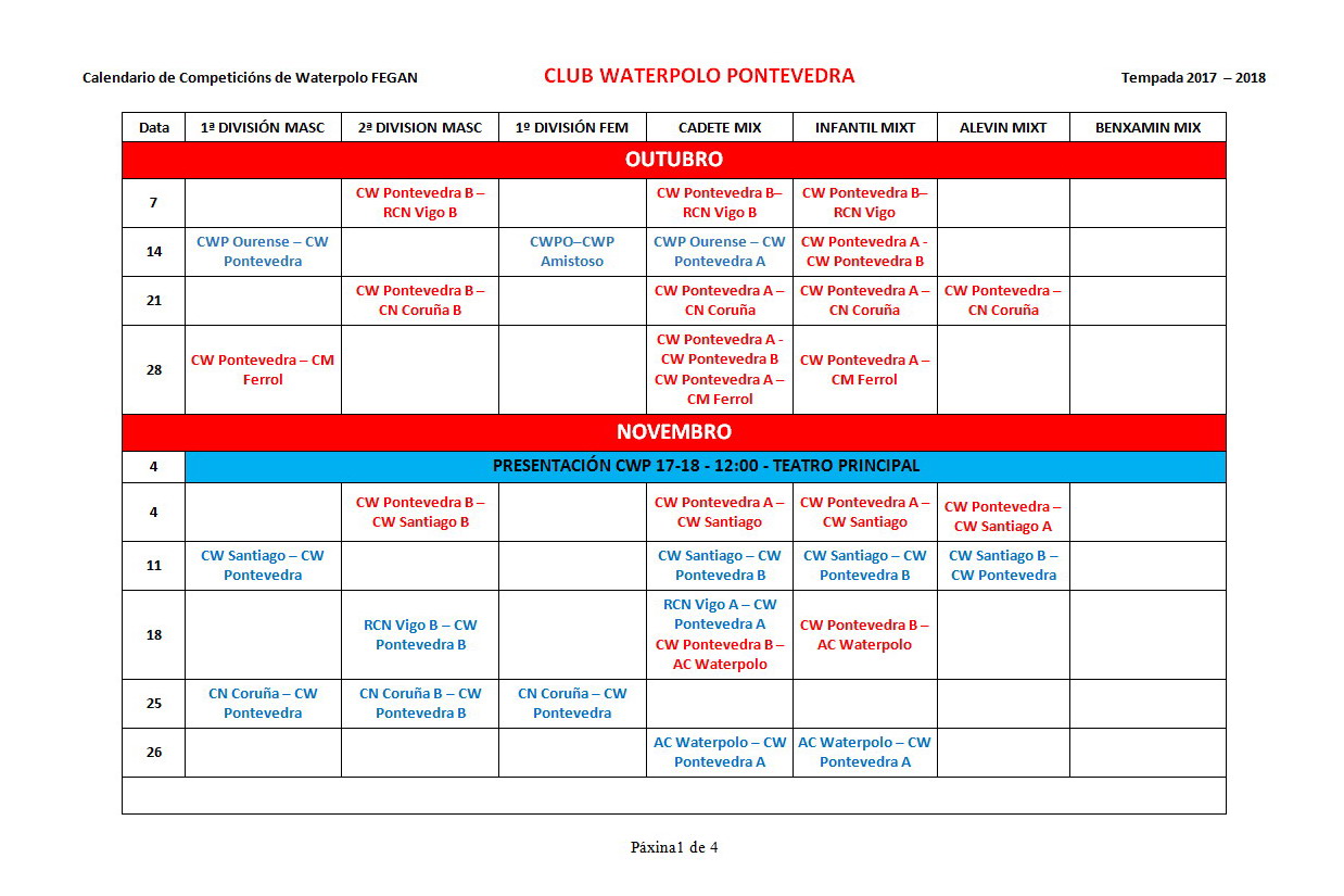 En este enlace podéis descargar el calendario de actividades del Club Waterpolo Pontevedra para la temporada 2017-18: CALENDARIO CWP 2017-18