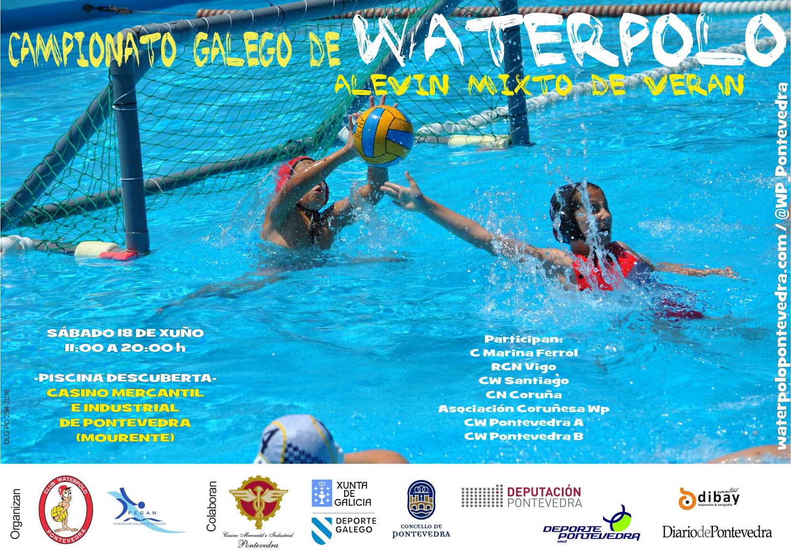 El próximo sábado 18 de junio se disputa en la piscina del Casino Mercantil e Industrial de Pontevedra el Campeonato Gallego Alevín Mixto de Verano de Waterpolo, con la organización del Club Waterpolo Pontevedra y la Federación Galega de Natación.