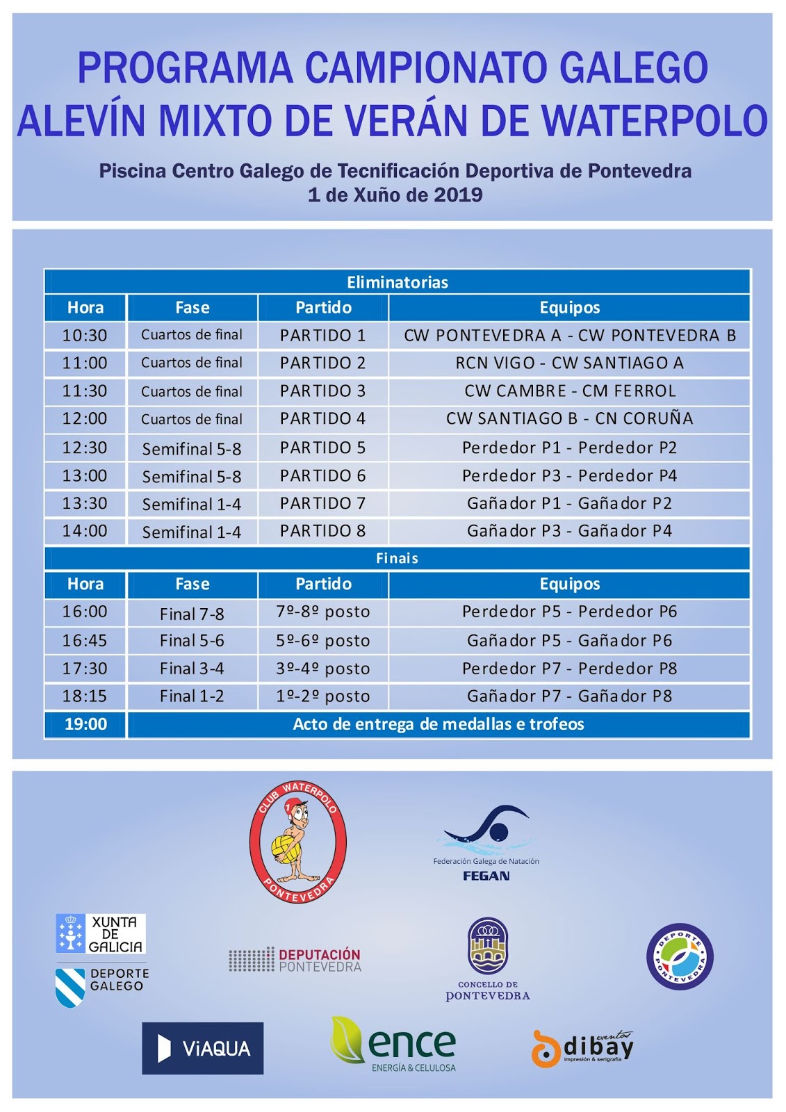 El Campeonato Gallego de Waterpolo Alevín Mixto de Verano reunirá en la piscina del CGTD de Pontevedra, el próximo sábado 1 de junio, a 8 equipos gallegos. Ésta es la categoría más numerosa en equipos de todas, siendo la más importante en cuanto a la promoción de este deporte.