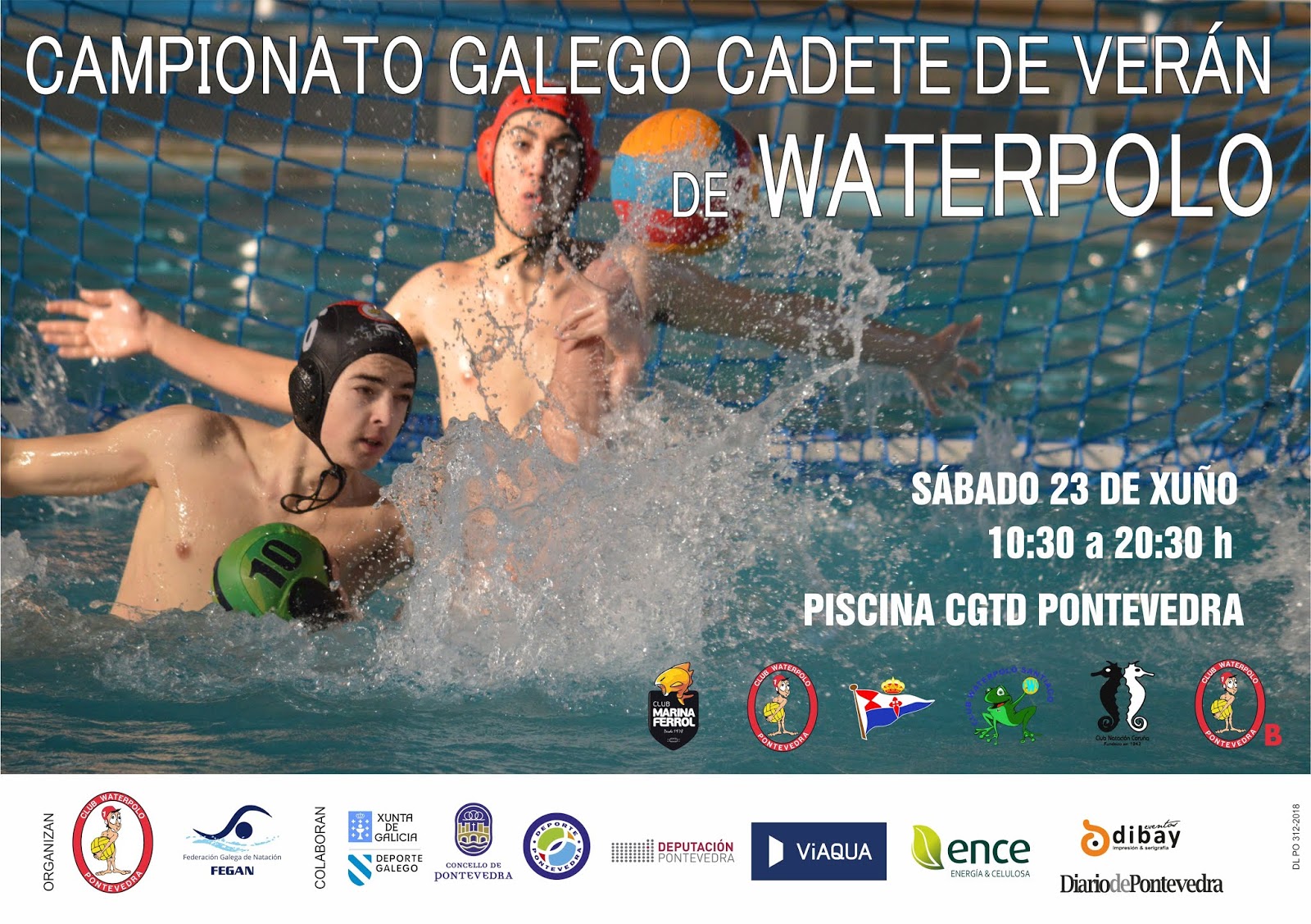 De nuevo el Club Waterpolo Pontevedra ejercerá como anfitrión y organizador de un Campeonato Gallego de Waterpolo, y con este Cadete de Verano ya son 7 de los 12 disputados esta temporada. Todo gracias a la inestimable colaboración del CGTD de Pontevedra y Xunta de Galicia, que ceden su piscina para la celebración de estos eventos.