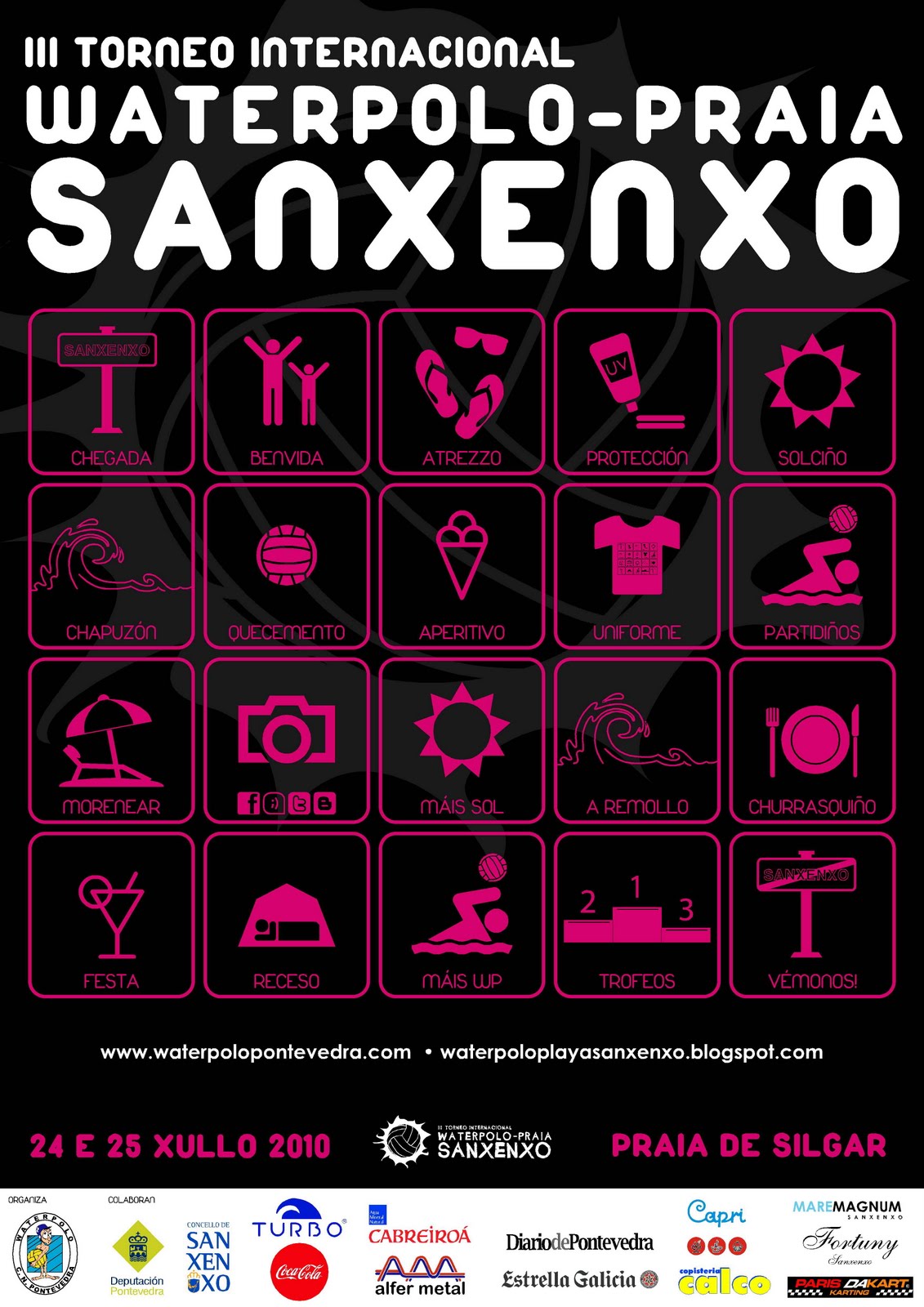 Ya tenemos el cartel del III Torneo Internacional de Waterpolo-Praia Sanxenxo. Una vez más diseñado por Marta Glez.