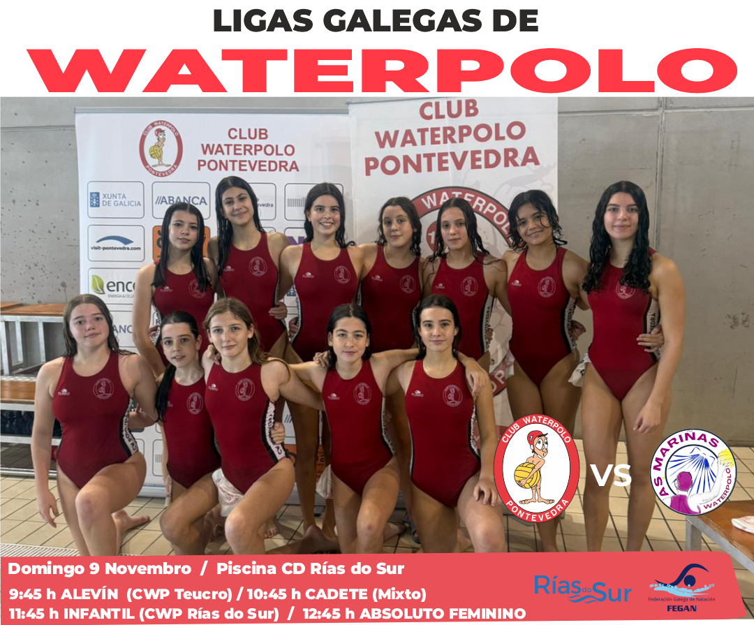 El próximo domingo 9 de noviembre el CW Pontevedra recibirá en la piscina del CD Rías do Sur al CW As Mariñas para jugar 4 partidos de las Ligas Gallegas de Waterpolo.