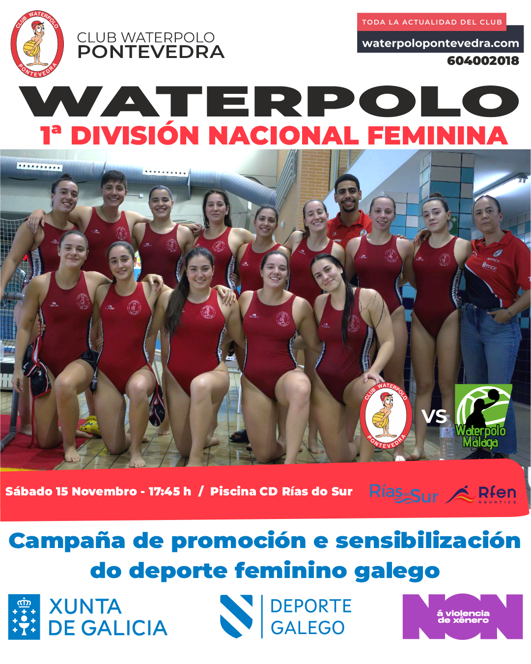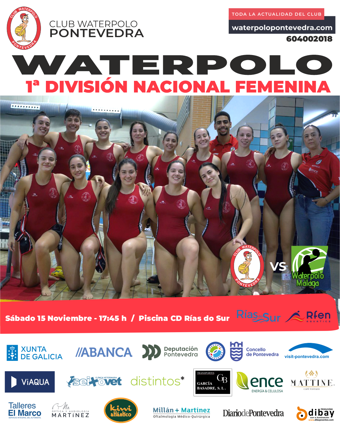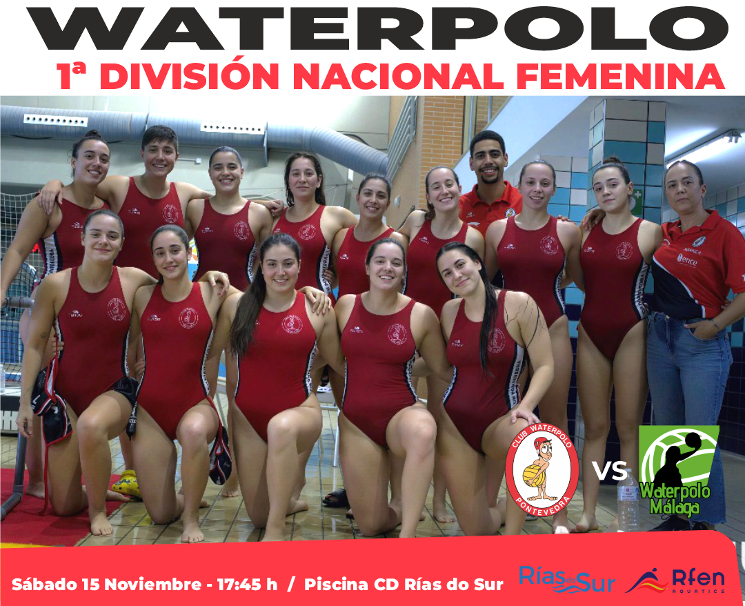 El CW Pontevedra recibirá el próximo sábado 15 de noviembre al CD Waterpolo Málaga en la piscina de Rías do Sur. El equipo pontevedrés ocupa la primera posición en solitario en la clasificación de Primera División Nacional Femenina, mientras que las malagueñas cierran la tabla tras acumular cuatro derrotas. Esto no será motivo para que las locales se confíen ni se relajen, conocedoras de la igualdad que hay en esta competición.