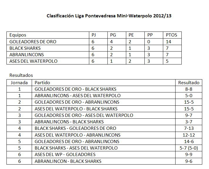 Tras la sexta jornada de la Liga Pontevedresa de Mini-waterpolo disputada el pasado sábado en Rías do Sur, finaliza la fase regular definiendo los enfrentamientos para los play-offs finales.