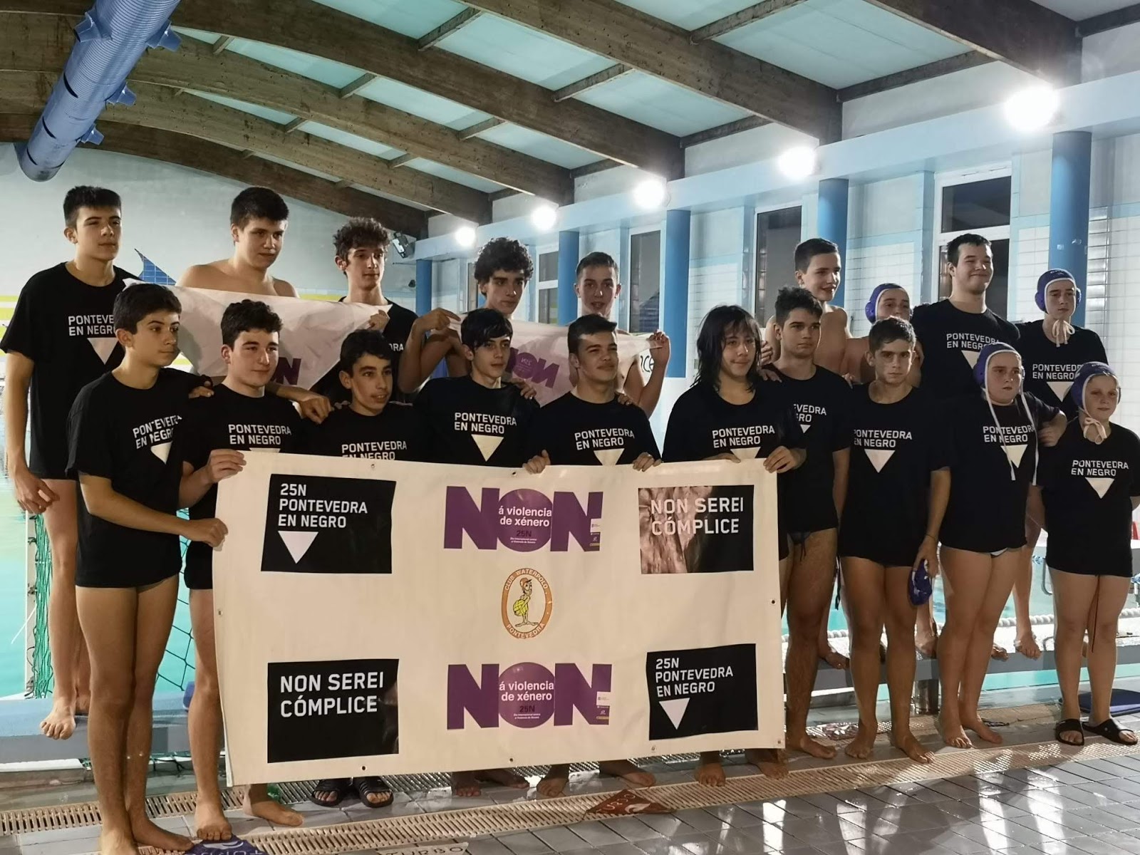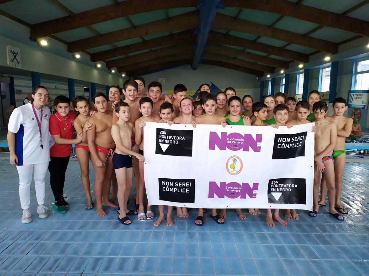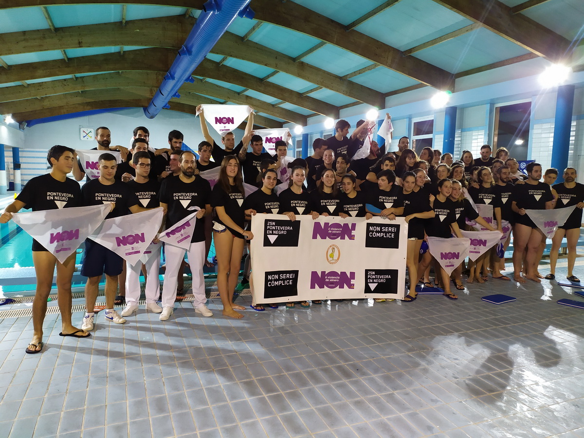 El pasado sábado 23 de noviembre el Club Waterpolo Pontevedra disputó su primera jornada de las Ligas Gallegas de Waterpolo 2019-20 como local, jugando 5 partidos en la piscina del CGTD de Pontevedra. Aprovechando estos partidos, el CW Pontevedra en colaboración de los clubes visitantes, celebró unos actos con motivo del 25 de noviembre, día internacional contra la violencia de género.