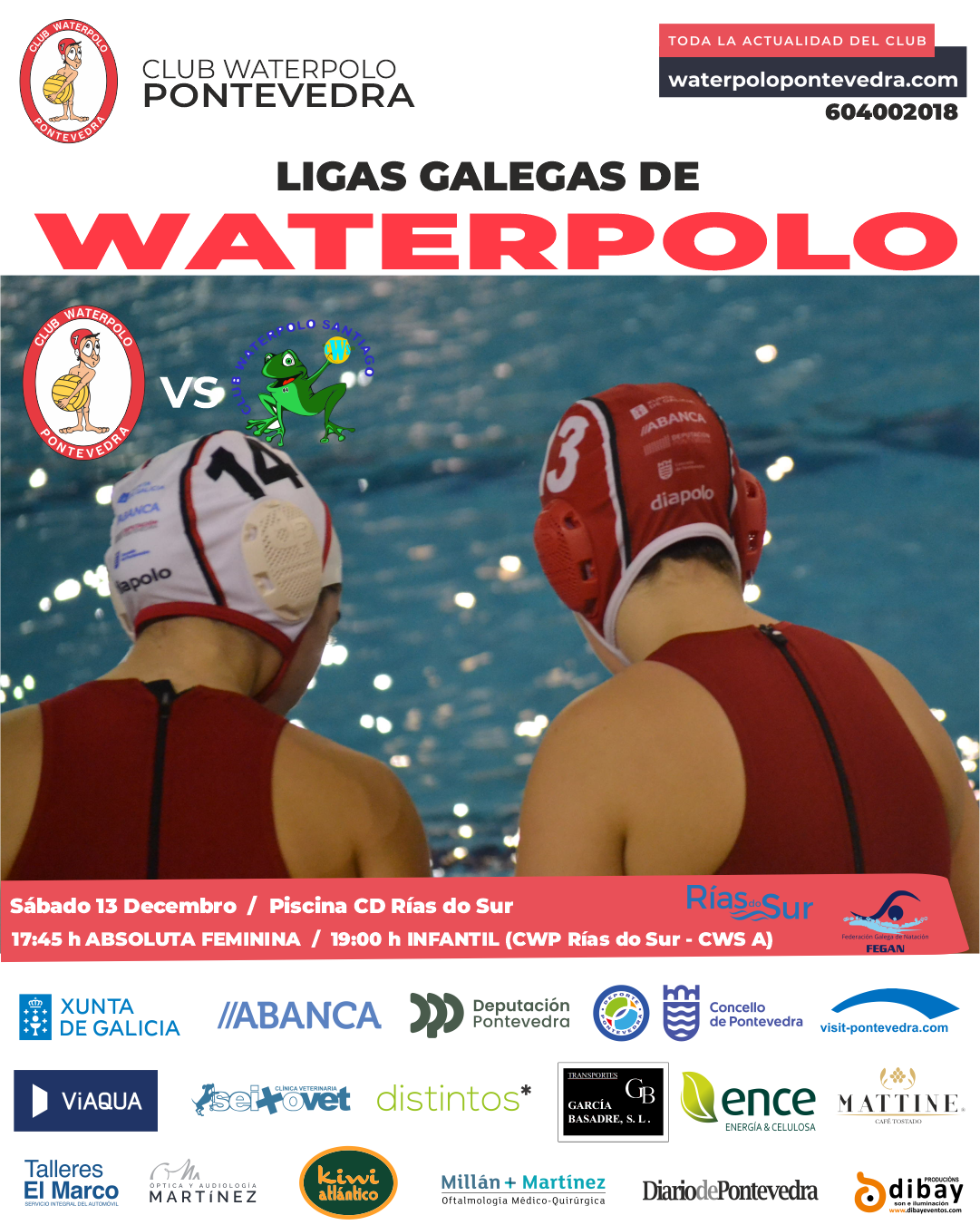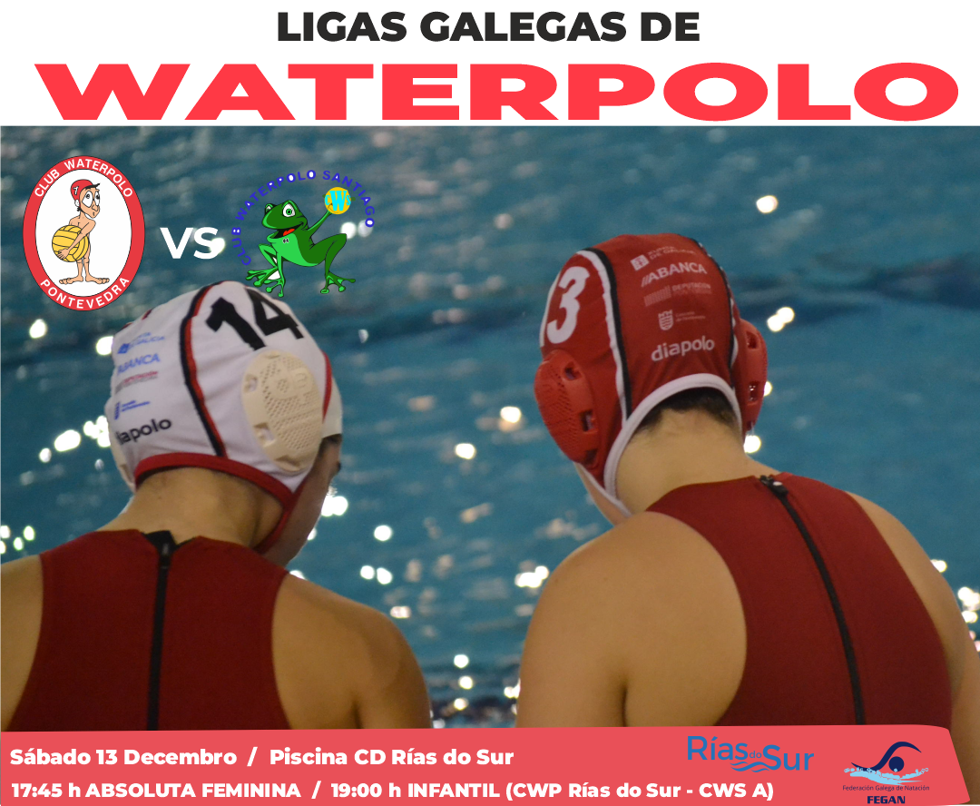 El CW Pontevedra recibirá de nuevo en Rías do Sur al CW Santiago para disputar 2 partidos de las Ligas Gallegas de Waterpolo. Será esta la 4ª jornada que nos visita el CW Santiago, al ser los dos clubes gallegos con más equipos participando en las competiciones autonómicas (suman un total de 12 enfrentamientos entre las distintas categorías).