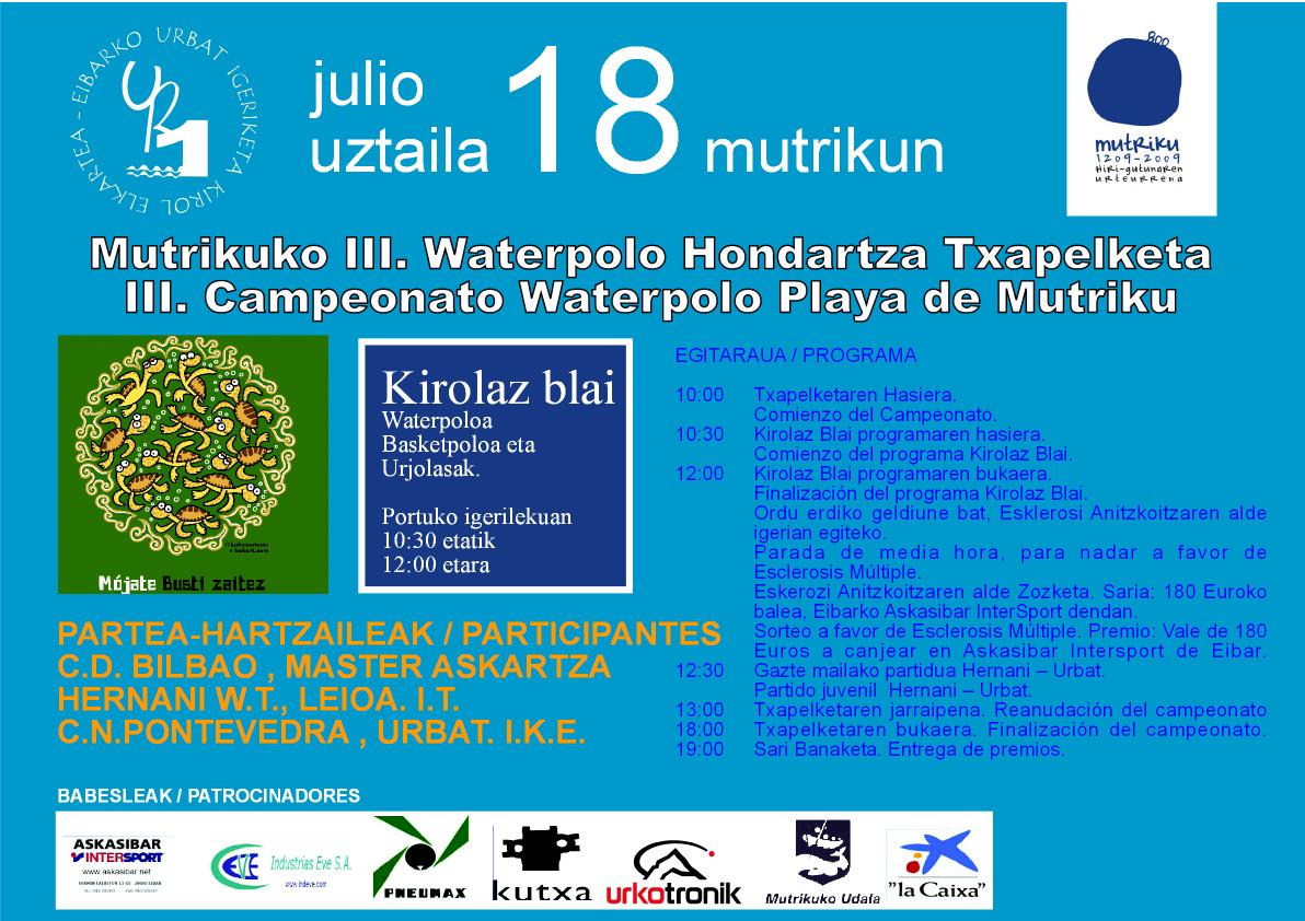 18:00 Igerilekuan, txapelketaren arau asalpena eta partiden zozketa. Explicación de las normas del campeonato y sorteo de partidos, en la piscina
