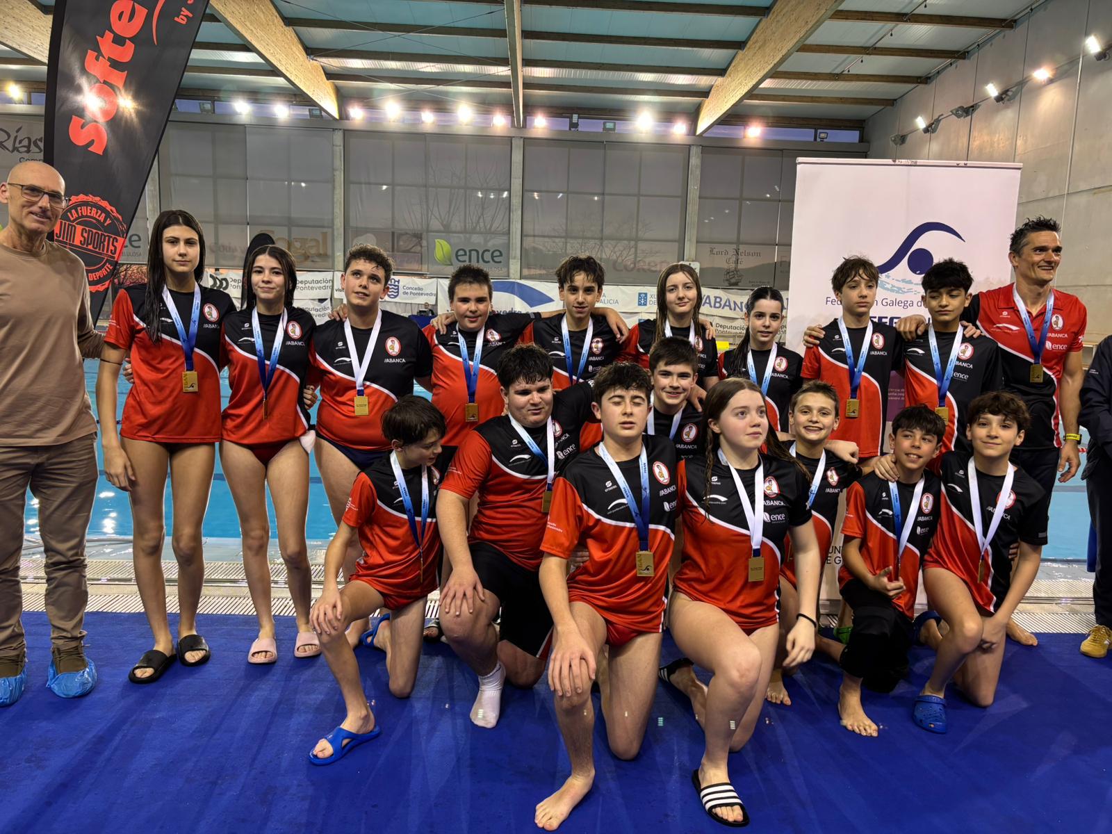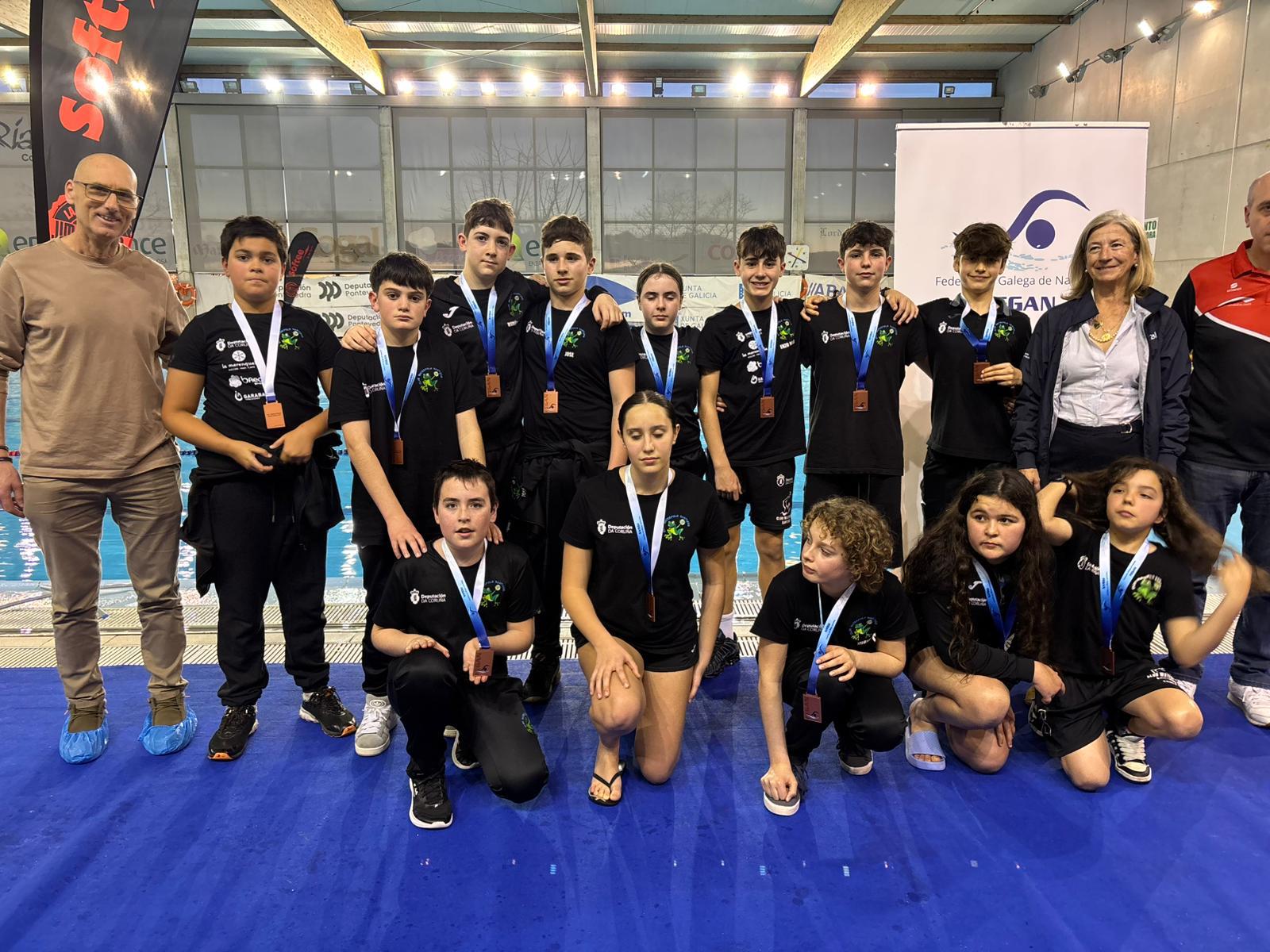 Con este título, el CW Pontevedra hace pleno con los 3 campeonatos gallegos de invierno de categorías inferiores: benjamín, alevín e infantil.