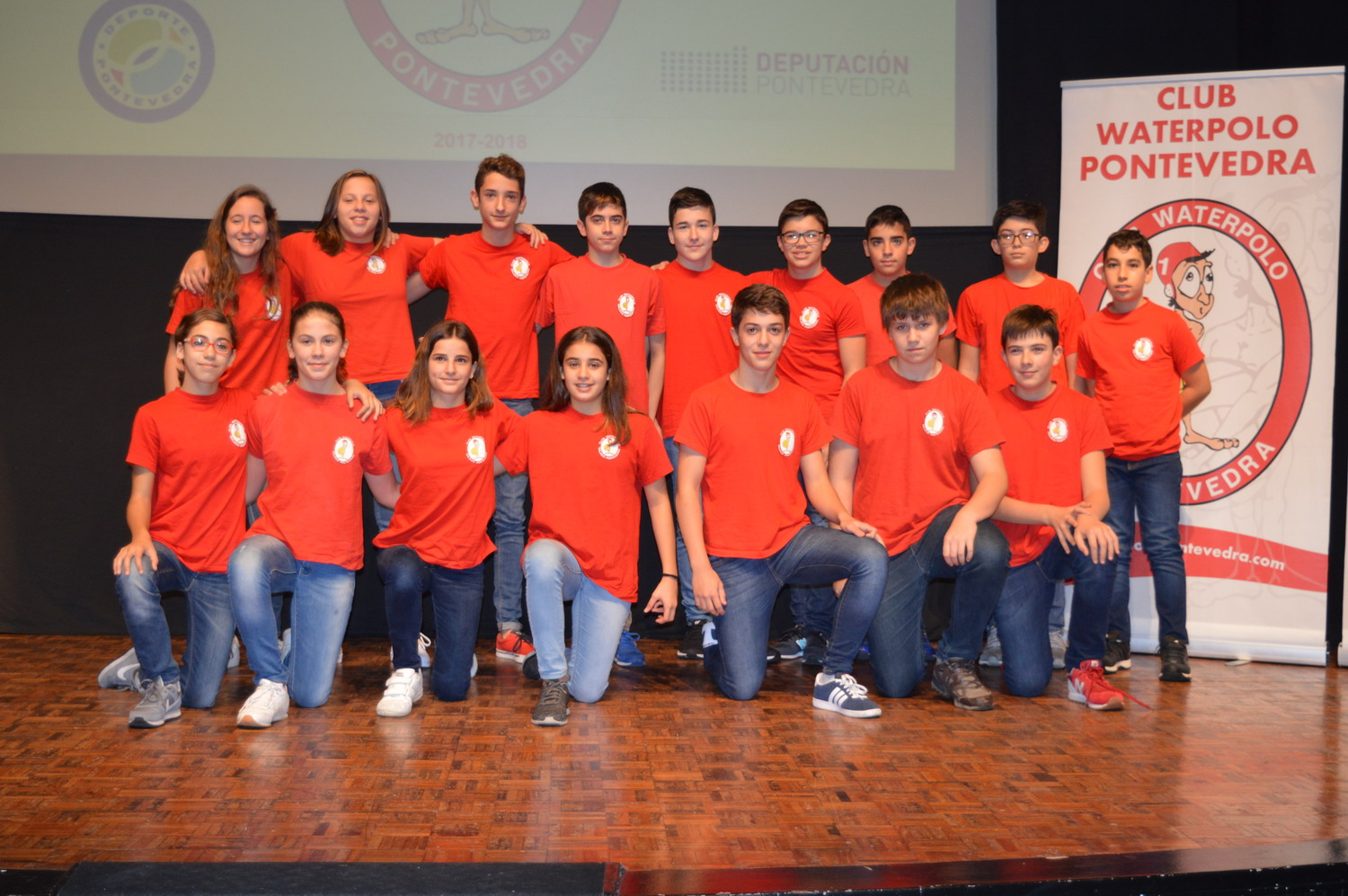 Para finalizar el evento, los diferentes equipos del Club Waterpolo Pontevedra subieron al escenario ante las ovaciones del público asistente.