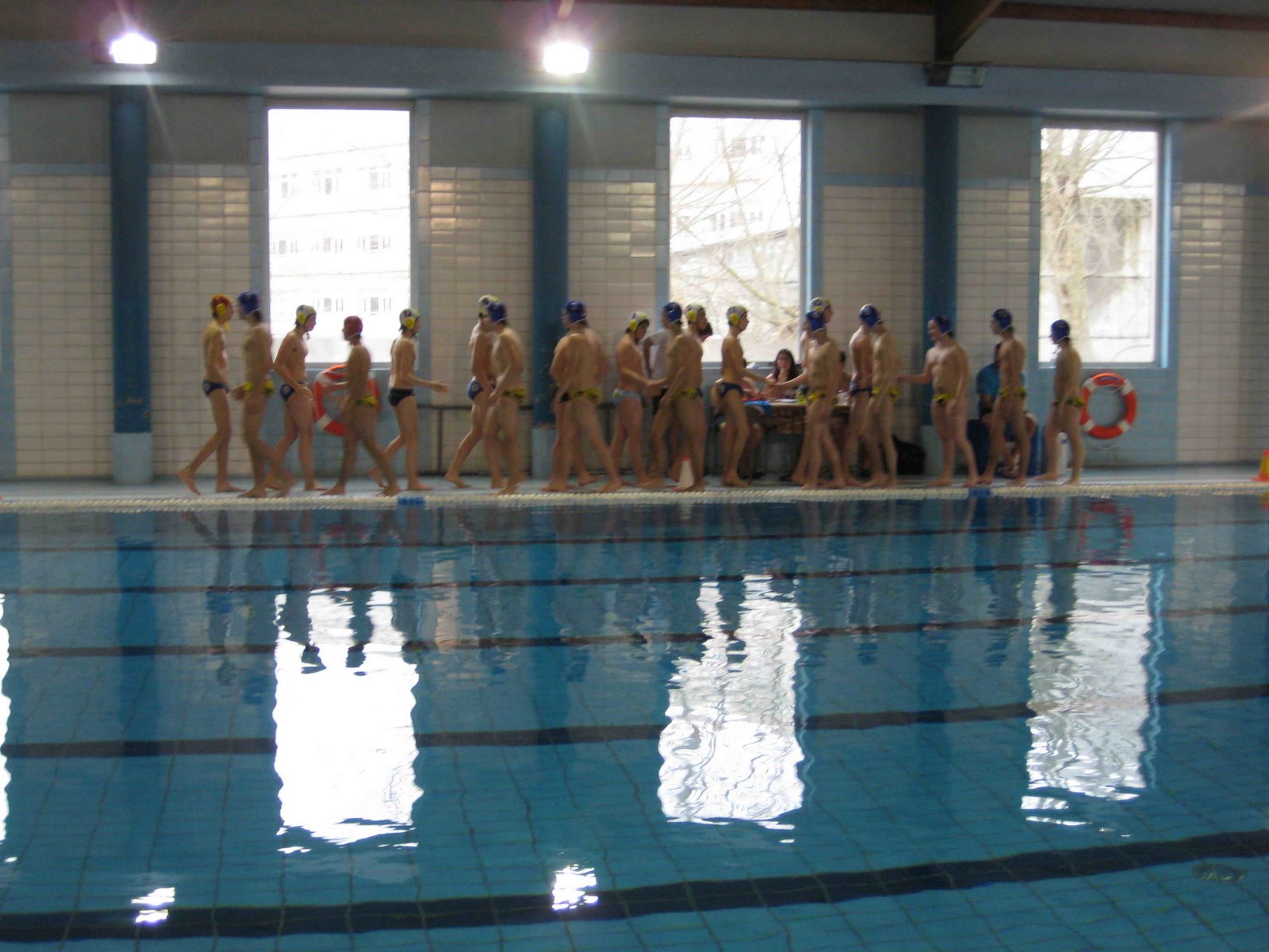 Comenzaron jugando los alevines (nacidos en el 97-98) un partido de mini-waterpolo, finalizando con un resultado de 2-9. Los portugueses sólo tenían 4 jugadores alevines, por lo que jugaron con varios infantiles del 96. Aún así los locales les plantaron cara haciendo un buen partido y consiguiendo varias ocasiones de gol.