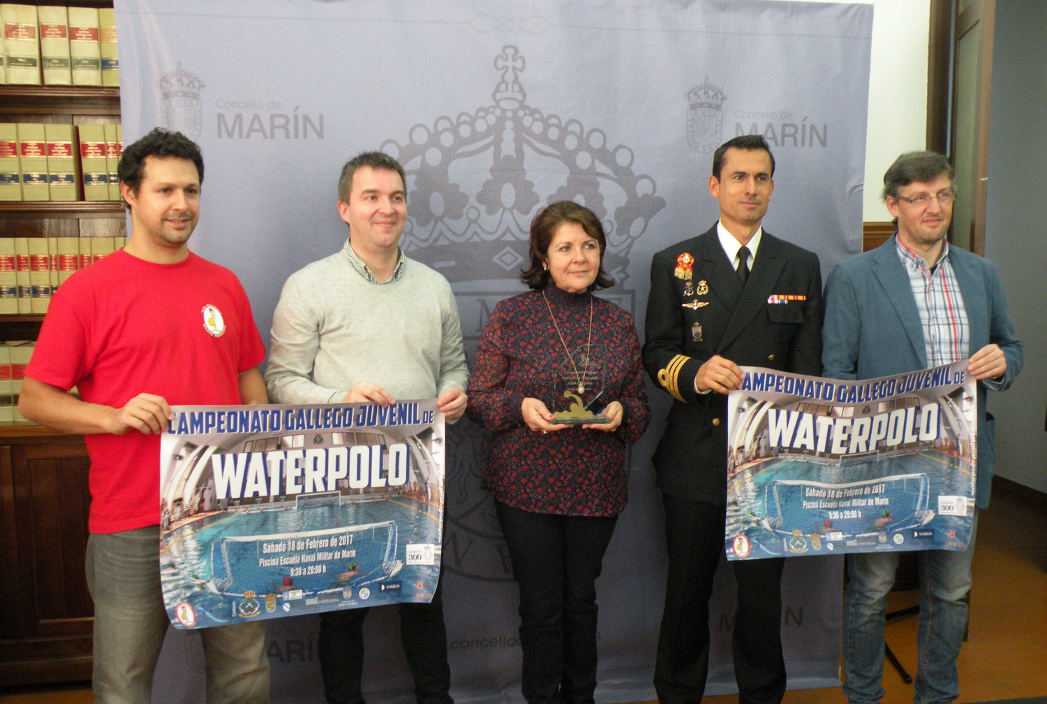 Este miércoles se presentó ante los medios de comunicación el Campeonato Gallego Juvenil de Waterpolo con un acto en el Ayuntamiento de Marín, donde participaron el Concejal de Deportes de Marín Antonio Traba, el Jefe de Instrucción de la Escuela Naval Ernesto Grueso y la Diputada de Deportes Chelo Besada, además de José Tellería como directivo del Club Waterpolo Pontevedra y Javi de Sáa, Director Técnico del CW Pontevedra.