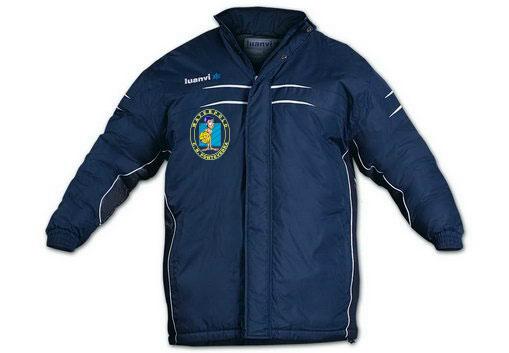 El nuevo chándal (que no sustituye al anterior, sino que será para que los que no lo tienen o ya no les sirve lo vayan renovando) consistirá en un pantalón azul marino y una sudadera de capucha azul royal (waterpolo) o amarilla (natación). Además también se consiguió un anorak (el de la imagen) que servirá para que en invierno todos vayan bien uniformados, también económico.