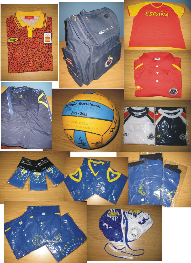 El bueno de Jordi Valls, entrenador responsable del waterpolo femenino en el CAR de Sant Cugat y miembro del cuerpo técnico de la Selección Española de Waterpolo Femenina, ha querido contribuir con un lote de material de la selección (camisetas, polos y mochila). Material de la selección española de su participación en los Juegos Olímpicos de Londres 2012 y de campeonatos internacionales como el Mundial Junior donde España ganó la medalla de oro.