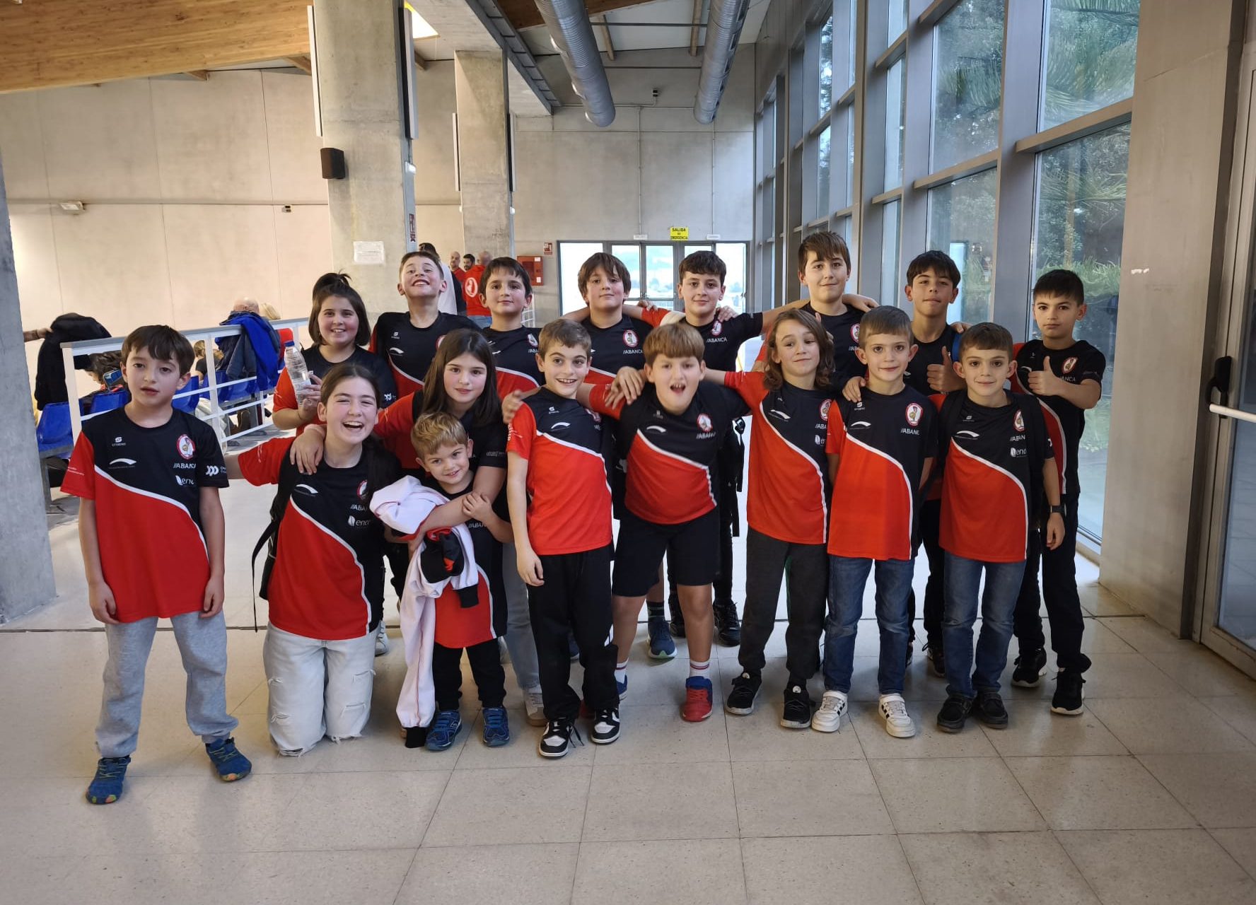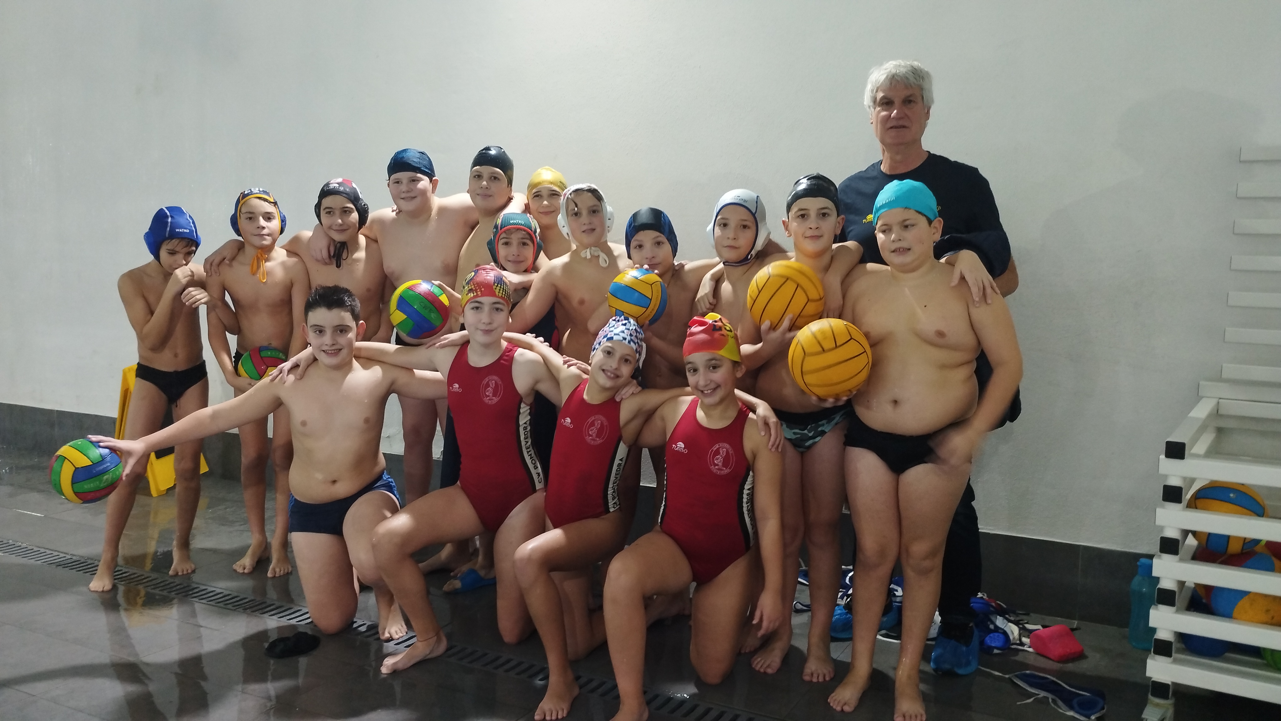 Ya por la tarde, tras el partido de Liga Nacional Femenina, se celebraba un partido amistoso de categoría benjamín entre los dos equipos de la provincia. Fue una gran experiencia para los jóvenes waterpolistas que no tienen una liga gallega de su categoría. Más de una veintena de niñas y niños de entre 6 y 9 años disfrutaron de este partido ante su público.
