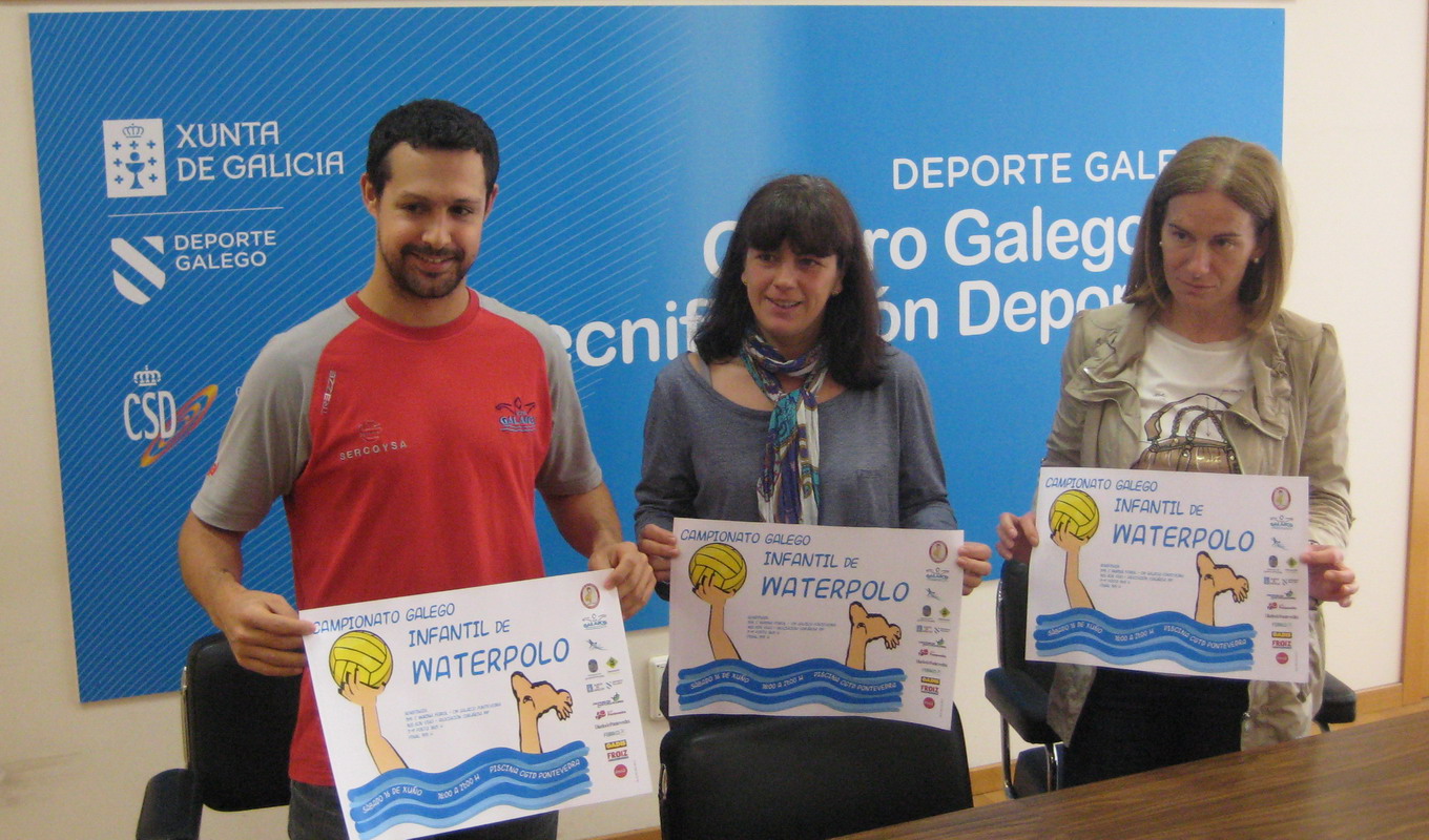 Este mediodía tuvo lugar en el Centro Galego de Tecnificación Deportiva de Pontevedra la presentación del Campeonato Gallego Infantil de Waterpolo. La presentación corrió a cargo de la Directora del Centro Galego de Tecnificación Deportiva Elena Fernández, la Presidenta del Club Waterpolo Galaico Pontevedra Francisca García de Dios y el Director Técnico del Club Waterpolo Galaico Pontevedra Javi de Sáa.