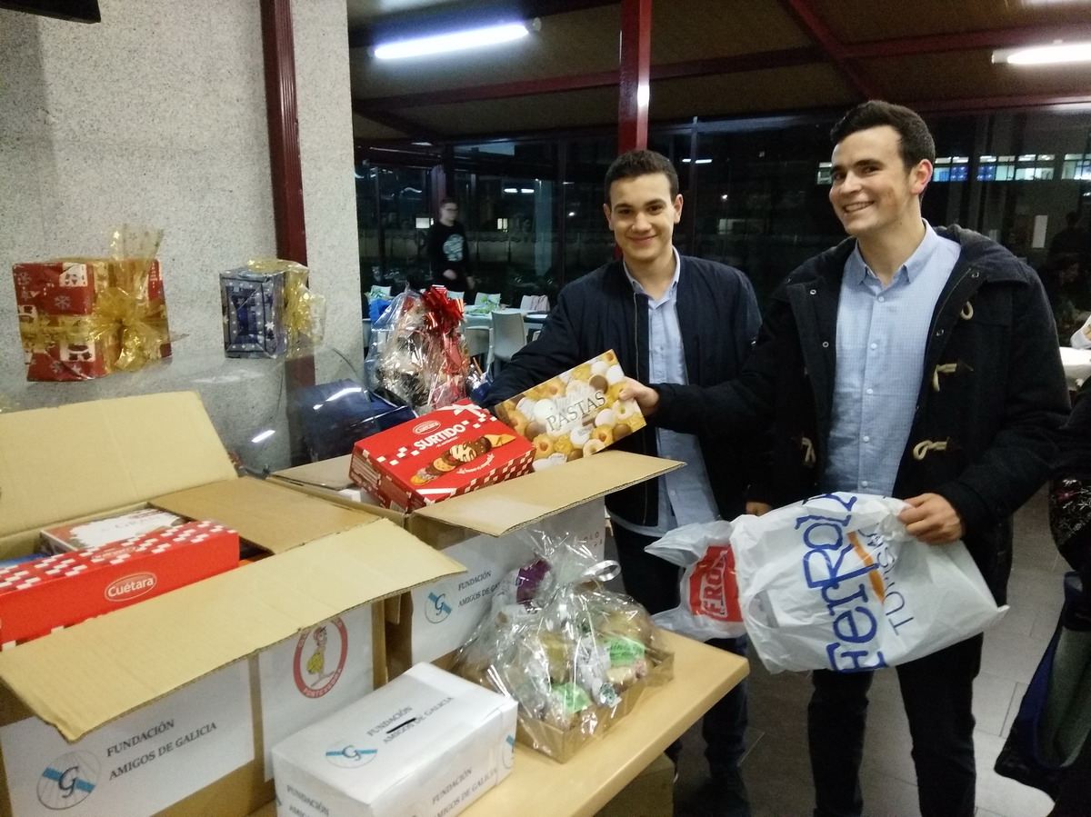 Socias y socios del club pontevedrés mostraron su faceta más solidaria llenando varias cajas con paquetes de pastas y galletas para donar a la Fundación Amigos de Galicia, que las repartirá entre familias pontevedresas para que puedan disfrutar mejor de las fiestas.