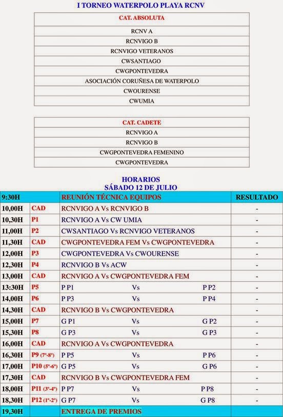 El próximo sábado el Club Waterpolo Galaico Pontevedra participa en el Torneo de Waterpolo Playa RCNV que el club vigués organiza en la playa de O Vao (Vigo).