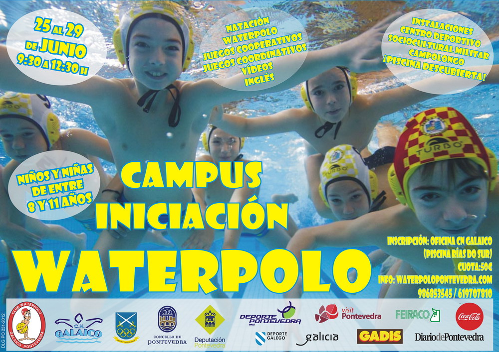 El Club Waterpolo Galaico Pontevedra organizará un año más el CAMPUS DE INICIACIÓN AL WATERPOLO del 25 al 29 de junio de 2012, con horario de 9:30 a 12:30 h.