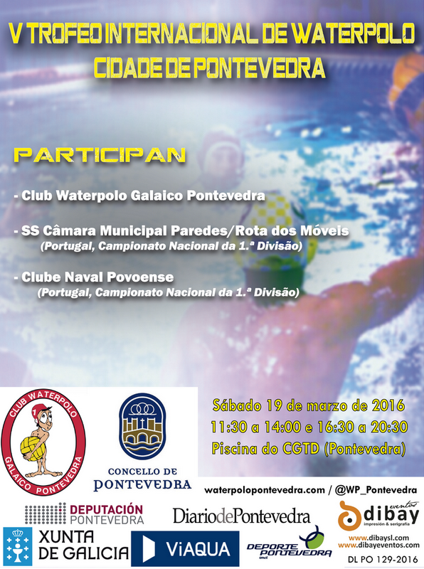 El Concello de Pontevedra, con la colaboración técnica del Club Waterpolo Galaico Pontevedra, celebrará el V Trofeo Internacional de Waterpolo Cidade de Pontevedra el próximo sábado 19 de marzo. El evento tendrá lugar en la piscina del CGTD de Pontevedra, una vez más gracias a la colaboración de la dirección del propio Centro Galego de Tecnificación Deportiva, que cede sus instalaciones para el desarrollo de las actividades de waterpolo.
