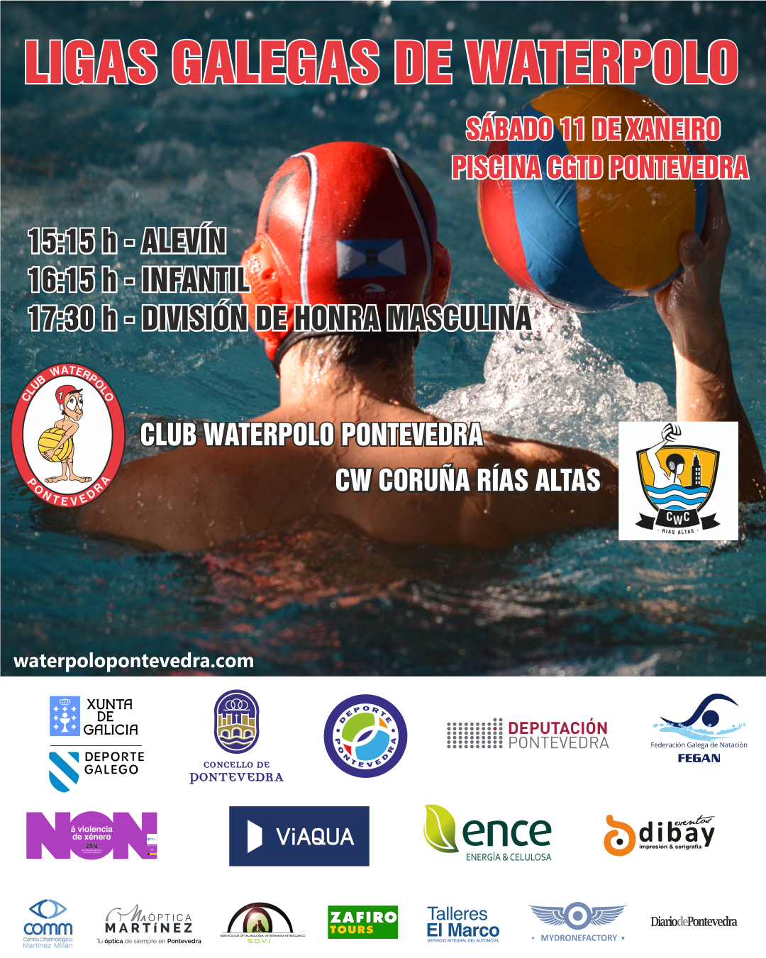 El próximo sábado 11 de enero el Club Waterpolo Pontevedra reanuda la competición de las Ligas Gallegas de Waterpolo con 3 partidos frente al CW Coruña Rías Altas en la piscina del CGTD de Pontevedra.