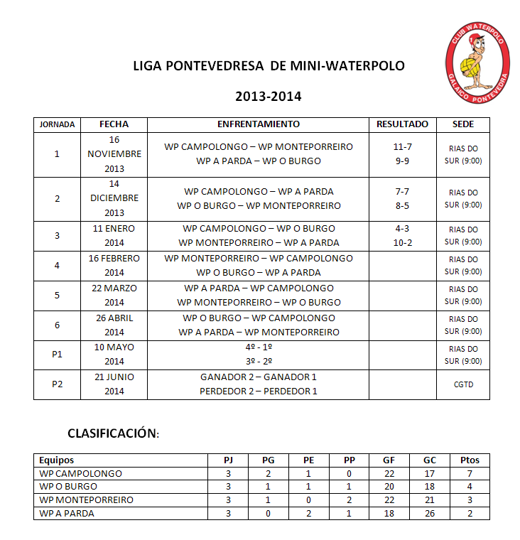 En la tercera jornada de la Liga Pontevedresa de Mini-Waterpolo, celebrada el sábado 11 de enero en Rías do Sur, se volvió a vivir un buen ambiente waterpolístico entre los más pequeños y pequeñas del CW Galaico Pontevedra.