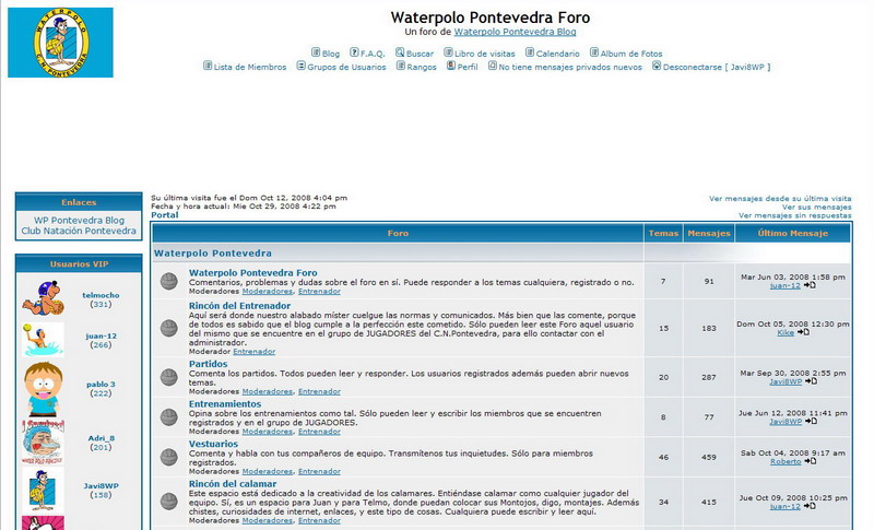 El Foro Waterpolo Pontevedra vuelve a estar en funcionamiento. Podéis entrar desde la columna de enlaces del blog o pinchando aquí: http://waterpolopontevedra.forogratis.es/